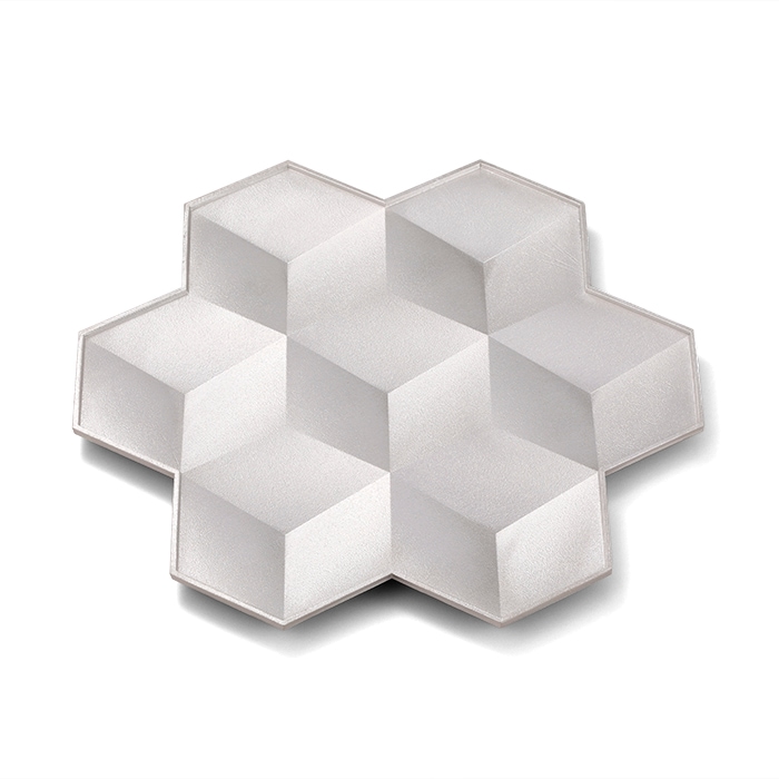複数のくぼみから成る錫100%のトレーです。雪の結晶を幾何学的に表現しました。