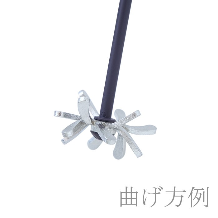 古来より、錫は飲み物の雑味を取り、まろやかにするといわれています。錫の特性であるやわらかさを生かし、「穂」の部分を錫100%製にすることで、自由に曲げることが可能です。好みの形に曲げ、かき混ぜることで、赤ワインの香味の変化をお楽しみいただけます。 曲げ方を変えることにより、ワインをかき混ぜたときの対流に違いが生まれます。いろいろな形でワイン遊びをお楽しみください。