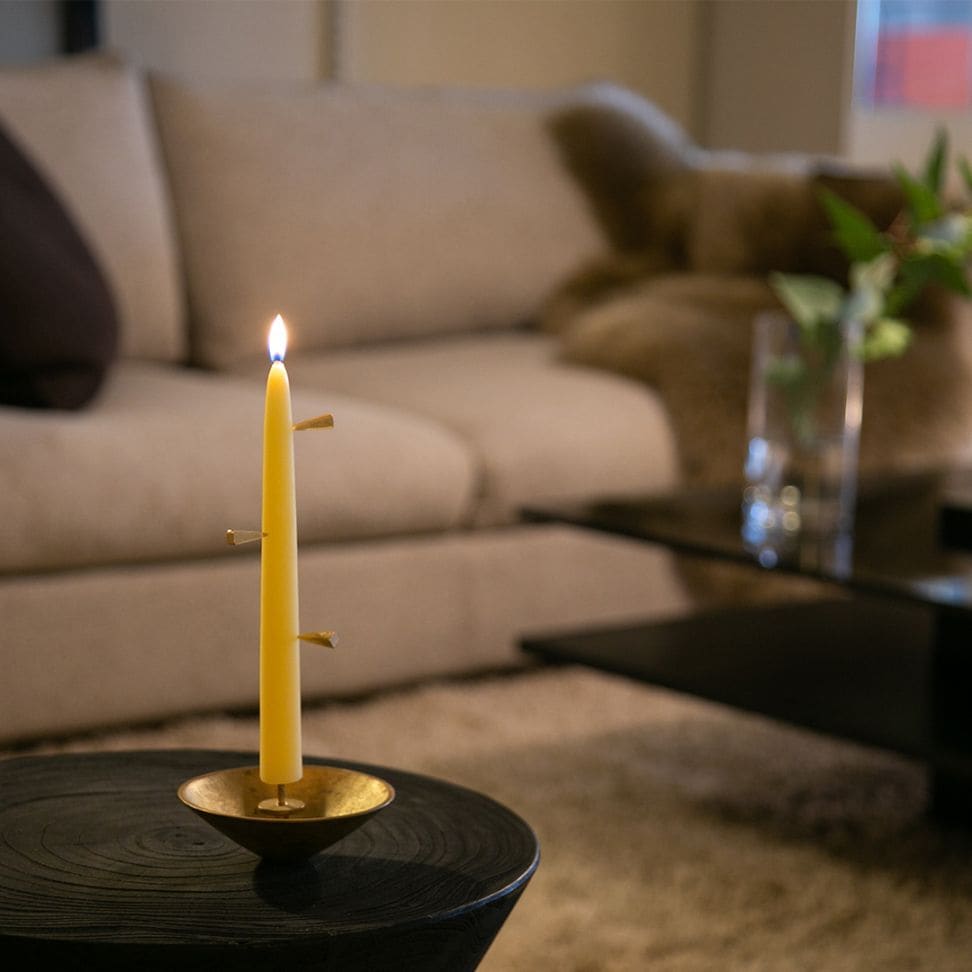 燭台部分は、富山県高岡市の伝統産業である真鍮鋳物と金属加工の技術を用い、職人が一つ一つ丁寧に手仕上げを施しています。