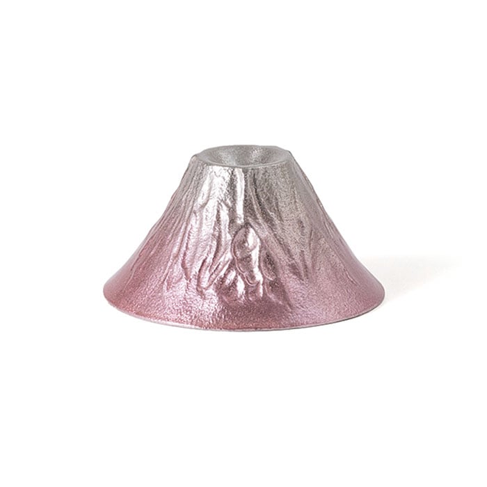 やわらかく光を反射する錫の性質を下地として生かし、素材の表情に合わせて淡桜色を重ねることで、内側からほのかに光るような、澄んだ発色を引き出しています。