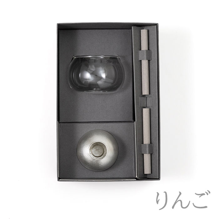 | パーツ毎のサイズ | 錫の器:H56 φ75(3種共通) ガラスカバー・りんご:H58 φ90 ガラスカバー・ひょうたん:H116 φ90 ガラスカバー・パイナップル:H103 φ90 |
