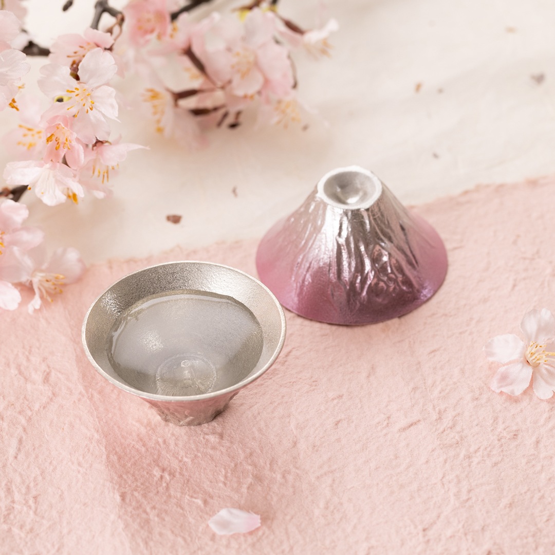 山肌をやさしく染める情景を映した「ぐい呑 - 桜富士」の2ヶセットです。