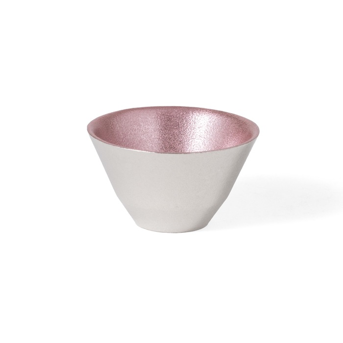 淡桜の盃は、錫の表情に合わせて色を重ねることで、内側からほのかに光るような澄んだ発色を引き出しています。